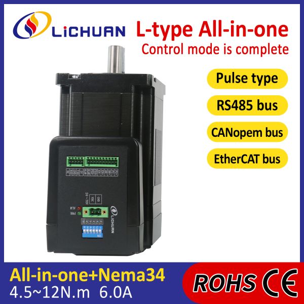 Closed Loop Integrated Stepper Motors Driver by Lichuan is an L-shaped integrated motion control solution combining stepper motor, driver, and encoder in one compact unit. Covering torque ranges from 0.4N.m to 12N.m, this Closed Loop Integrated Stepper Motors Driver supports NEMA17, NEMA23, NEMA24, and NEMA34, making it suitable for light-duty to heavy-duty industrial automation applications.